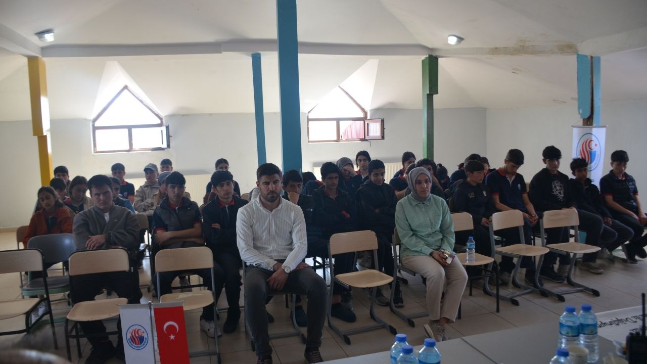 Bir kolejde gerçekleştirilen programda öğrencilere, trafik kuralları ve polislik mesleği hakkında eğitim verildi.