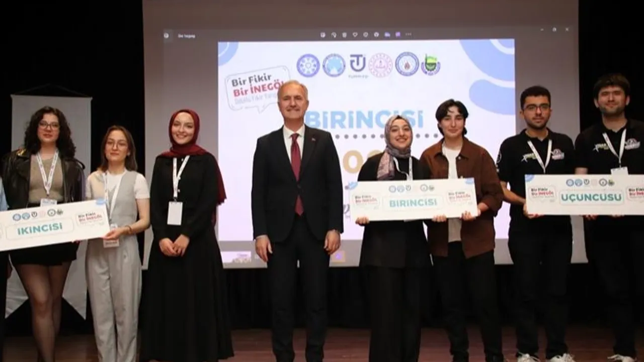 Bursa İnegöl Belediyesi organizasyonuyla lise ve üniversite öğrencilerine yönelik gerçekleştirilen “Bir Fikir Bir İnegöl” ödüllü fikir yarışmasının finali yapıldı.BURSA (İGFA) - Toplamda 53 projenin yer aldığı yarışmada dereceye giren projeleri hazırlayan öğrencilere ödülleri protokol üyeleri tarafından takdim edildi.