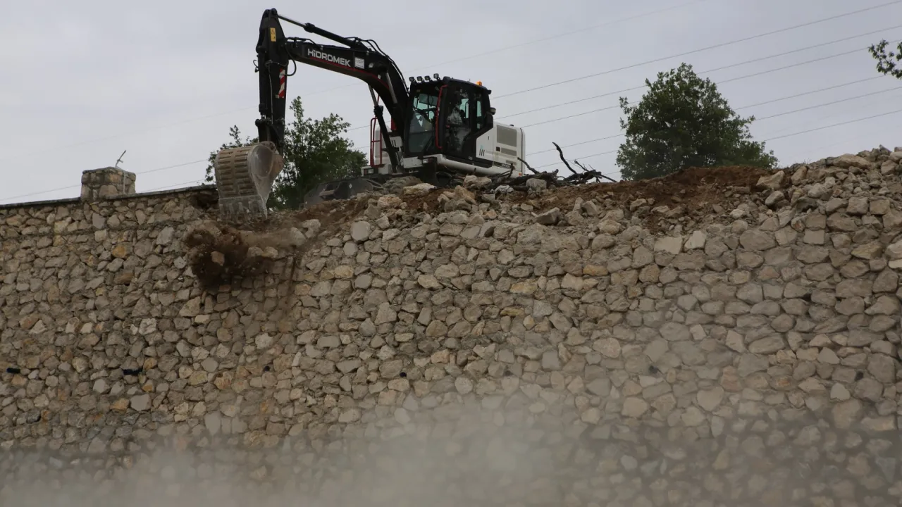 Nilüfer Belediyesi yıkım ekipleri, Dağyenice Mahallesi’nde 3 bin 800 metrekarelik taş duvarı izinsiz yapıldığı gerekçesiyle yıktı.BURSA (İGFA) - Nilüfer Belediyesi, kaçak yapılaşmayla mücadelesine aralıksız devam ediyor.