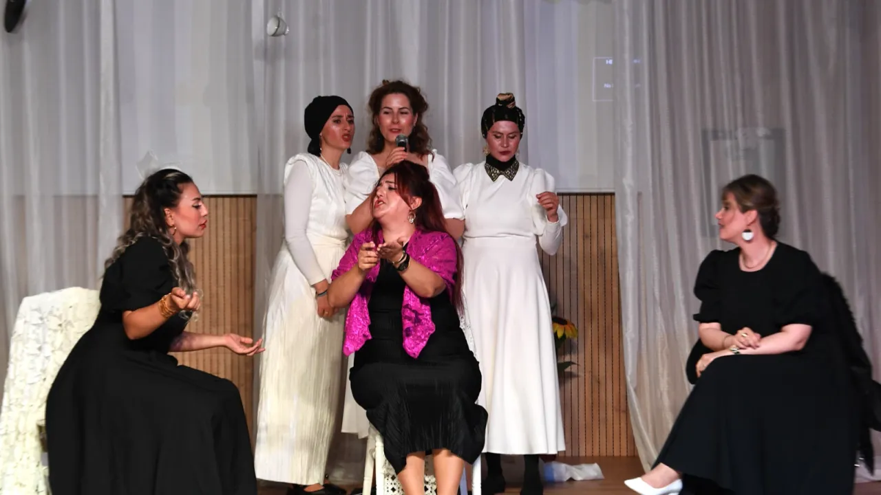 Bursa Osmangazi Belediyesi tarafından düzenlenen ‘Kadınlar Tiyatro Sahnesinde’ adlı tiyatro kursuna katılarak altı ay tiyatro eğitimi alan Osmangazili kadınlar, Kozalar adlı tiyatro oyunu ile ilk kez seyirci karşısına çıktı. BURSA (İGFA) - Bursa Osmangazi Belediyesi, ilçedeki kadınlar için 6 aylık tiyatro kursu düzenledi. ‘Kadınlar Tiyatro Sahnesinde’ adı altında düzenlenen kursa, ev hanımları, çalışan kadınlar ve sahne deneyimi olmayan ancak tiyatroya ilgisi olan kadınlar katıldı. Kadınların sanatsal gelişimine katkı sağlamak ve kültürel hayata daha aktif katılımlarını teşvik etmek amacıyla hayata geçirilen kursa katılan üyeler, hem temel oyunculuk becerileri kazandı hem de birlikte üretmenin gücünü deneyimledi.
