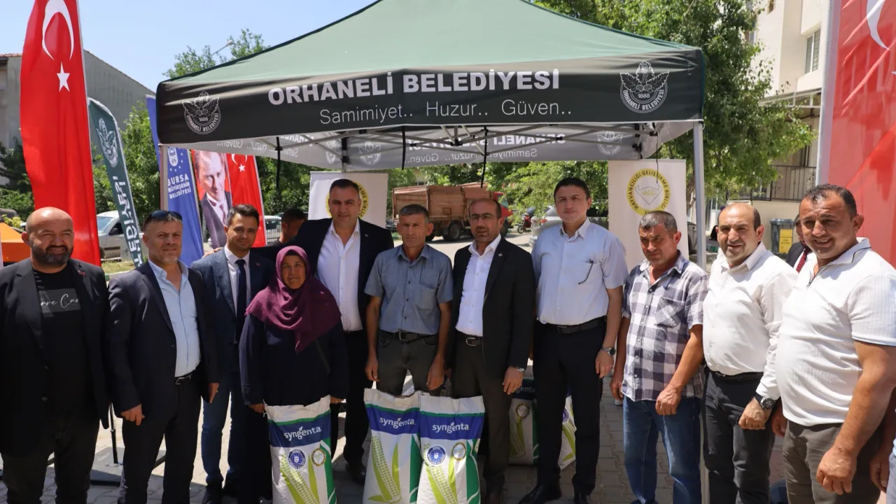 Bursa Büyükşehir Belediyesi, kırsal kalkınma hedefleri doğrultusunda Büyükorhan ve Orhaneli ilçelerinde 200 üreticiye toplam 1000 dekarlık alanda ekilmek üzere silajlık mısır tohumu dağıttı.BURSA (İGFA) - Bursa’da kırsal kalkınmanın sağlanması amacıyla fide-fidan temininden ekipman desteğine, damla sulama boru dağıtımından sıvı gübre teminine kadar birçok konuda çiftçiye destek veren Büyükşehir Belediyesi, Büyükorhan ve Orhaneli’deki çiftçileri silajlık mısır tohumu ile destekledi.