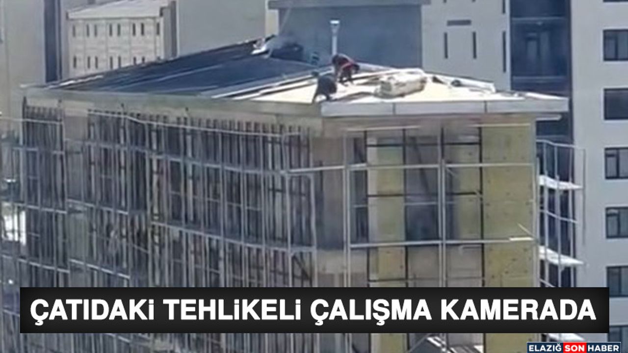 Çatıda çalışma gerçekleştiren işçiler, herhangi bir önlem almadan iş yaptığı görüldü.