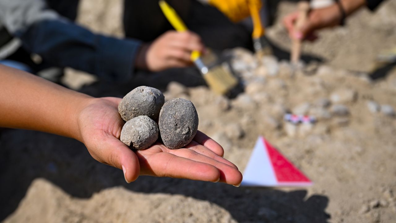 'Bu yıl bizi şaşırtan en önemli bulgu, diğer Urartu merkezlerinde bazen tek tek bulunan sapan taşlarının yığıntı halinde bulunması. Dört numaralı oda diye adlandırdığımız en yüksek noktadaki yapıda sapan taşı yığınıyla karşılaştık. Sura yakın bir bölümde yer alıyor. Bu taşların Urartularda ilk kez bulunması bizim için çok değerli çünkü şimdiye kadar tek tek bulunan taşlar sapan taşı olarak değerlendirilmemişti.