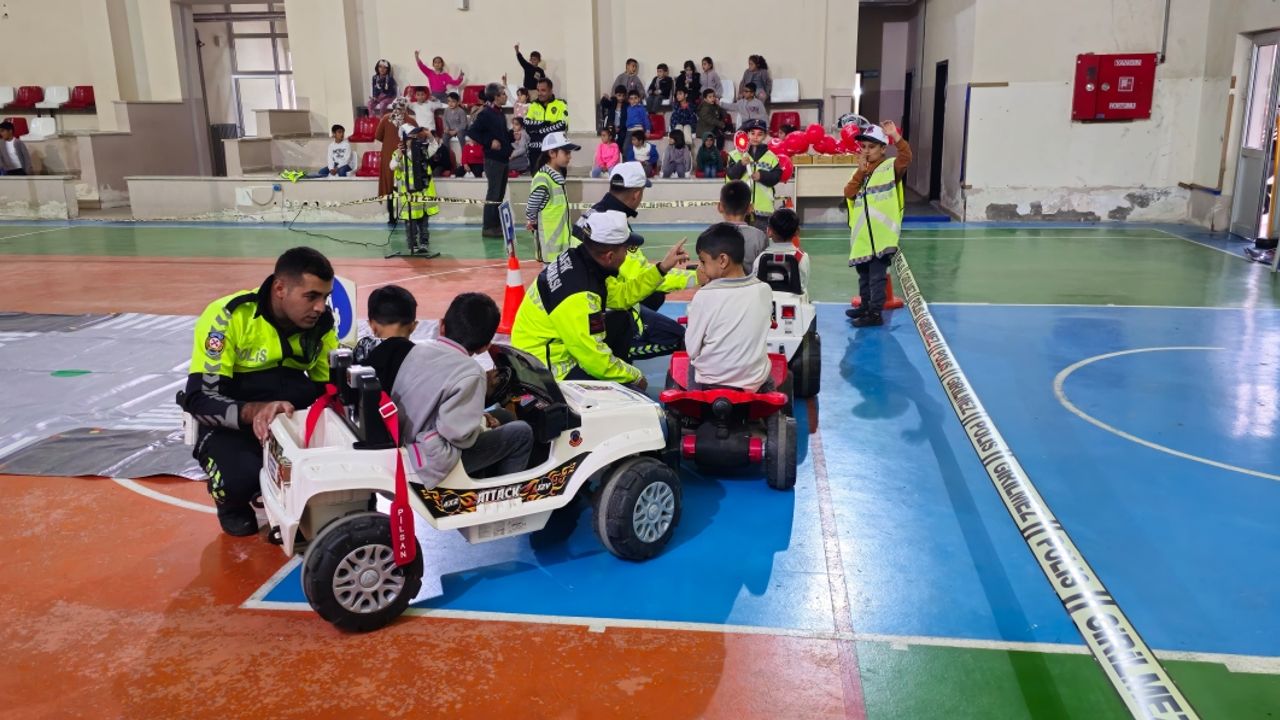 İlçe Emniyet Müdürlüğü ve İlçe Jandarma Komutanlığı ekiplerince, ilçedeki çocukları trafik kurallarıyla ilgili bilgilendirmek amacıyla çalışma başlatıldı.