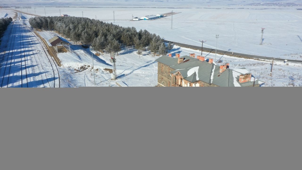 KARS (AA) - Kars'ın Selim ilçesinde, 56 yıl önce Türkiye Cumhuriyeti Devlet Demiryollarınca (TCDD) ağaçlandırılan, bozkırın ortasındaki tren istasyonunun çevresi karla kaplandı.
