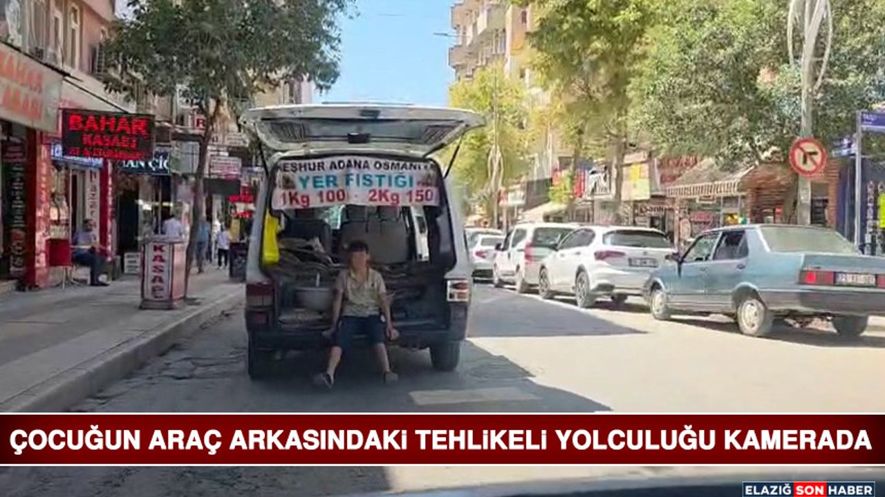 Araç içerindeki çocuk ise pikabın arkasına oturup ayaklarını sarkıtarak yolculuk etti.