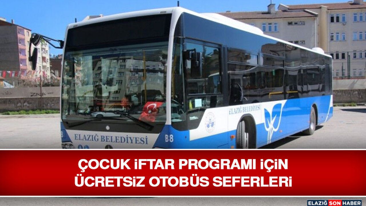 Elazığ Belediyesi, Gönül Sofrası Çocuk İftar Programı'na katılacak vatandaşlara ulaşım kolaylığı sağlamak amacıyla şehrin üç ayrı noktasından ücretsiz otobüs seferleri düzenleyecek.