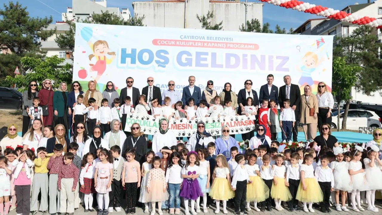 Çayırova Belediyesi’nin çocuk kulüplerinde eğitim gören Çayırovalı minikler, muhteşem bir organizasyonla hünerlerini sergiledi. Çocuk Kulüpleri Kapanış Programı’nda konuşma gerçekleştiren Çayırova Belediye Başkanı Bünyamin Çiftçi, “Çocuklarımızla gurur dolu bir final” açıklamasında bulundu.KOCAELİ (İGFA) - Çayırovalı miniklerin, geleceğe daha donanımlı ve daha özgüvenli bir şekilde hazırlanmasına imkan sunan ve okul öncesi eğitim almasına olanak sağlayan Çayırova Belediyesi Çocuk Kulüpleri’nde kapanış programı, bugün gerçekleştirildi. Çayırova Belediyesi Üst Otoparkı’nda düzenlenen kapanış programına, Çayırova Belediye Başkanı Bünyamin Çiftçi, siyasi parti ilçe temsilcileri, muhtarlar, öğrenciler ve çok sayıda Çayırovalı katılım gösterdi. Öğrencilerin yıl boyunca hazırladığı eserlerin sergilendiği, oyun balonları, yüz boyama etkinlikleri, jonglör ile sihirbaz gösterileri ve pamuk şeker ikramlarıyla çocuklar için adeta bir festival havasında geçen etkinlik, ilk olarak saygı duruşu ve İstiklal Marşı’yla başladı.