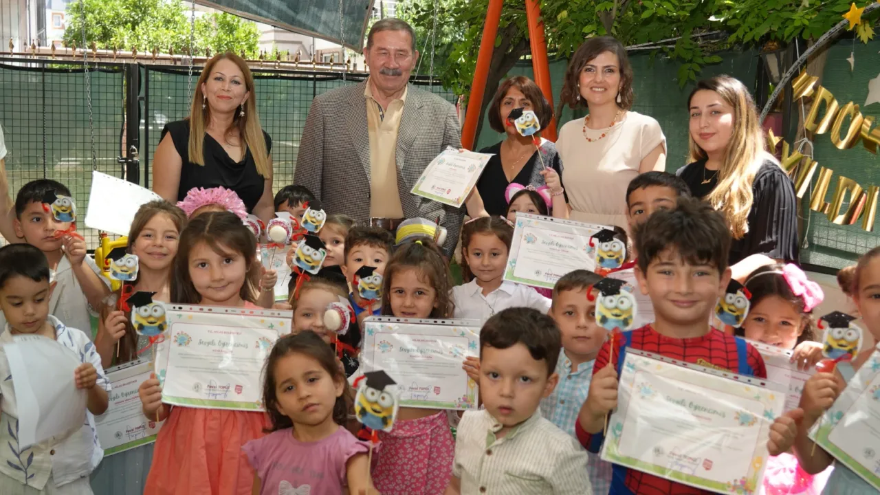 Milas Belediyesi Çocuk Oyun Evi’nde Sevgi Gemisi ve İnci Taneleri olmak üzere iki sınıfta eğitimlerini tamamlayan öğrenciler mezun oldu. Milas Belediye Başkanı Fevzi Topuz’da Çocuk Oyun Evi’ni ziyaret ederek çocukların mezuniyet sevincine ortak oldu. Mezun olan çocukları tebrik edip eğitim hayatlarında başarılar dileyen Başkan Topuz, öğrencilere başarı belgelerini takdim etti. Çocuklarda mezuniyet törenine özel hazırladıkları gösterileri başarılı bir şekilde sunarak mezuniyet coşkusunu doyasıya yaşadılar.