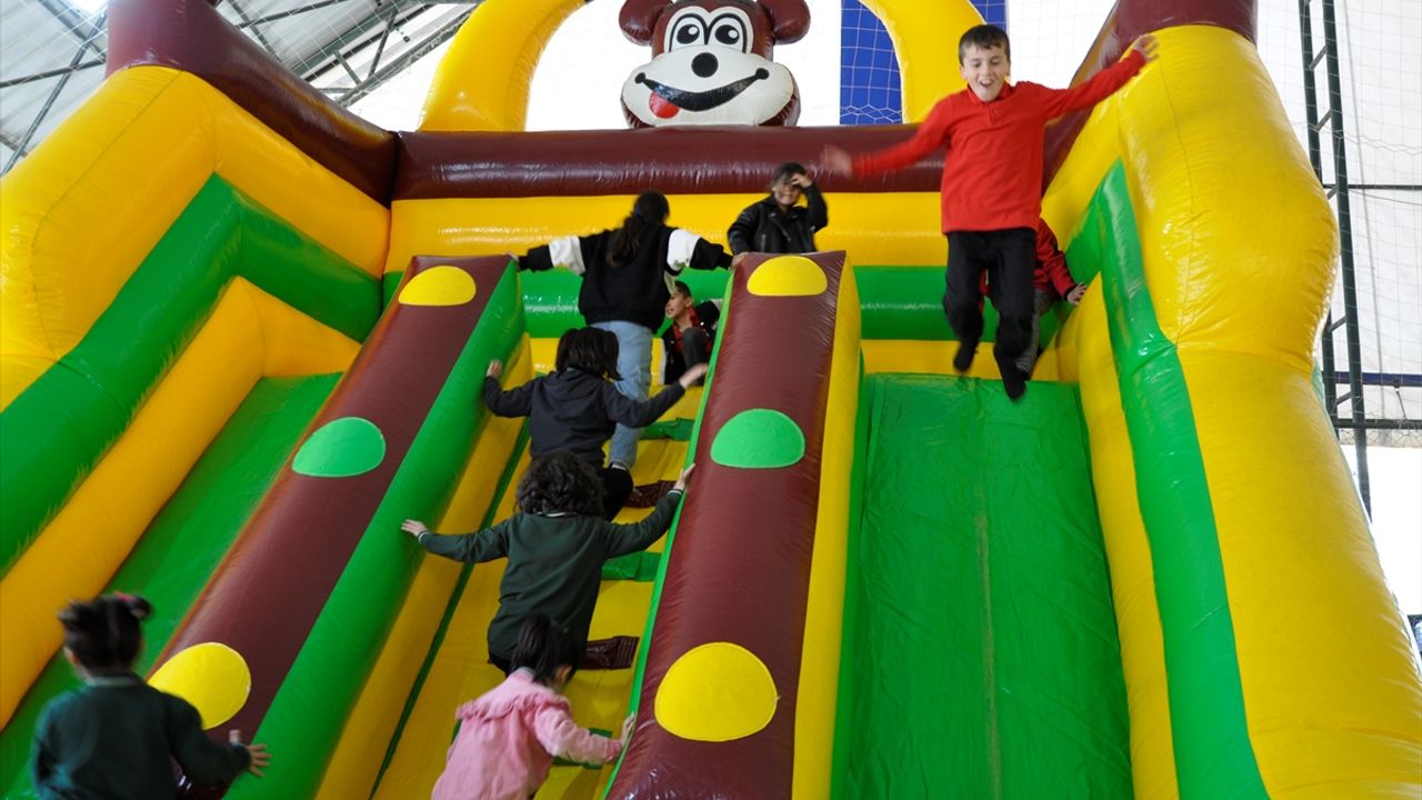 Şenlikte kurulan oyun alanlarında çocuklar gönüllerince eğlendi.