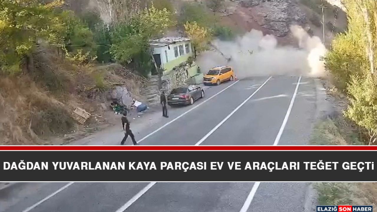 Tunceli’de çalışma yapıldığı sırada dağlık alandan kopan kaya parçası yola yuvarlandı. Facianın eşiğinden dönüldüğü olayda, kaya parçası dağ eteğinde bulunan ev ve park halindeki araçları teğet geçti. O anlar güvenlik kameralarına yansıdı.