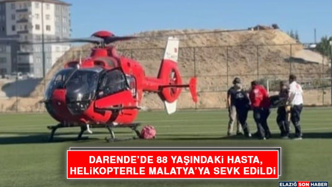 Edinilen bilgilere göre, Darende ilçesinde ikamet eden T.Ç. (88), aniden rahatsızlanarak kalp krizi şüphesiyle Darende Devlet Hastanesi’ne kaldırıldı. Burada yapılan ilk müdahalenin ardından hastanın durumunun ciddi olduğu belirlendi. Bunun üzerine Malatya’ya sevk edilmesine karar verildi. Sağlık ekiplerinin talebi üzerine ilçeye kısa sürede ulaşan hava ambulansı, hastayı alarak Malatya Turgut Özal Tıp Merkezi’ne nakletti.