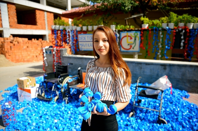 Aydoğan, hayata bakış açısını engelli bir çocuğun değiştirdiğini belirterek, "12 yıl evvel torunum için 2'nci kez topladığım kapaklarla bir tekerlekli sandalye alabildim. Bu sandalyeyi de küçük yaşta bir evladımıza hediye ettik. İsmi Tuncay'dı. Onun bir cümlesi beni bitirdi. Sandalyesi yokken annesine 'Keşke bizim de paramız olsa, tekerlekli sandalye alabilsek. Senin de kolların yorulmazdı' demiş. Bu cümleyi duyduktan sonra söz verdim. Ölene dek engelli çocuklarımız, bireylerimiz için mavi kapak toplayacağım" dedi.