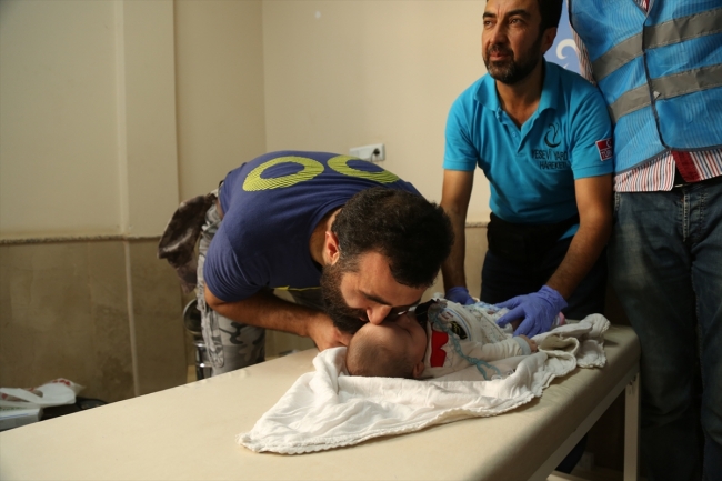 Heyet, Yesevi Yardım Hareketi Derneği'nin Bab'ın Türkiye sınırındaki Çobanbey'de düzenlediği sünnet organizasyonuna katıldı ve sünnet olan 70 çocuğa hediyeler dağıttı.