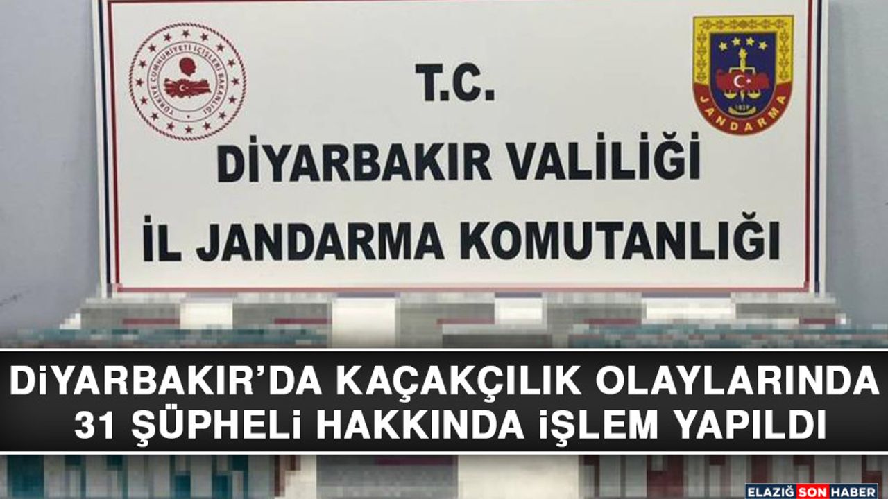Diyarbakır İl Jandarma Komutanlığı, Kaçakçılık ve Organize Suçlarla Mücadele Şube Müdürlüğü koordinesinde, il ve ilçelerinde 5607 sayılı Kaçakçılıkla Mücadele Kanununa muhalefet kapsamında, ülkeye kaçak yollarla sokulan malzemelerin ticaretini yapan ve nakleden kişilere yönelik jandarma sorumluluk sahasında operasyon düzenlendi. Operasyonlarda, 27 olay meydana gelirken, 31 şüpheli hakkında yasal işlem yapıldı.
