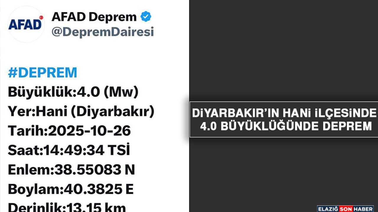 Diyarbakır’ın Hani ilçesinde meydana gelen 4.0 büyüklüğündeki deprem paniğe neden oldu. AFAD verilerine göre yerin 13,15 kilometre derinliğinde gerçekleşen sarsıntı, Diyarbakır merkezinin yanı sıra çevre illerden de hissedildi.