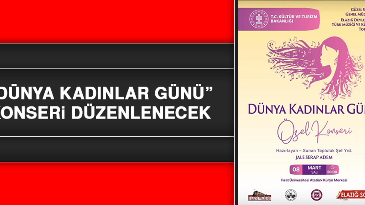 Elazığ Devlet Klasik Türk Müziği ve Kürsübaşı Topluluğu Şef Yardımcısı Jale Serap Adem’in hazırlayıp sunacağı konser, 8 Mart Salı günü saat 20:00’de Fırat Üniversitesi Atatürk Kültür Merkezi’nde müzikseverlerle buluşacak.