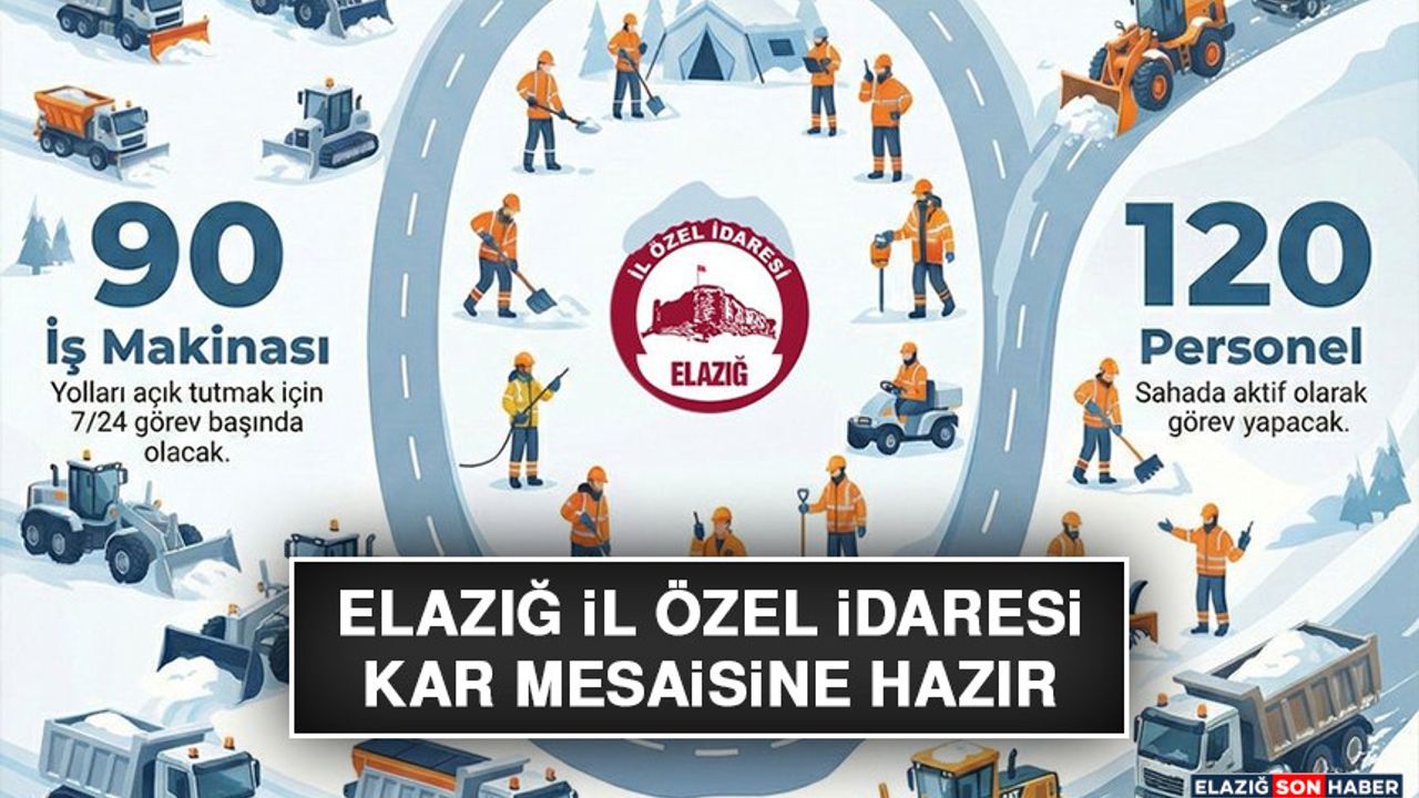 Elazığ İl Özel İdaresi, kış aylarında ulaşımın aksamaması için toplam 120 personel ve 90 iş makinasından oluşan ekip, karla mücadele çalışmaları kapsamında 7/24 esasıyla görev yaparak köy yollarını açık tutmak için mesai yapacak.
