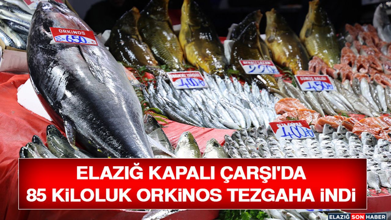 Elazığ Kapalı Çarşı'da yer alan balıkçı dükkanında, Akdeniz bölgesinden getirilen 85 kilogramlık orkinos satışa çıkarıldı. Deniz balıklarında bu sezon yaşanan verimlilik sayesinde tezgahlara giren dev balık, bölge halkının alışık olduğu tatlı su balıklarının aksine boyutuyla dikkat çekti. 1 metre 40 santim uzunluğunda olan orkinosun kilosunu 650 liradan satışa sunduklarını ifade eden Ebubekir Buluş, halk arasında "ton balığı" olarak bilinen bu balığın özellikle çocuk gelişimi için tercih edildiğini belirtti.
