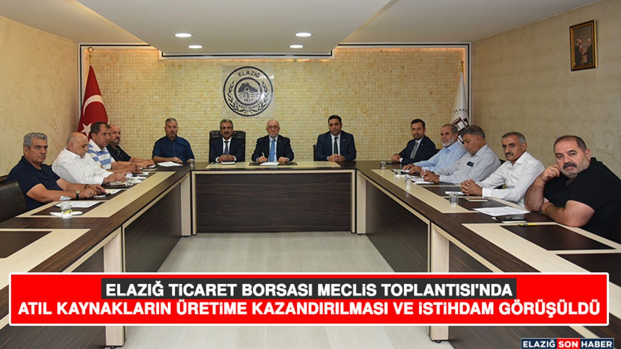 Elazığ'da Ticaret Borsası Ağustos Meclis Toplantısı gerçekleştirildi. Meclis Başkanı Aydın Torgut'un başkanlığında gerçekleştirilen toplantıda FKA ve Ticaret Borsası tarafından kentte yapılan yatırımlar hakkında fikir alışverişinde bulunularak, bölgede bulunan atıl kaynakları üretime koyarak istihdamın artması için yapılması gerekenler konuşuldu. Toplantıya, Elazığ Ticaret Borsası Başkanı Yönetim Kurulu Başkanı Mehmet Ali Dumandağ, yönetim kurulu üyeleri, meclis üyeleri ile FKA Genel Sekreter vekili Mehmet Şirin Budancamanak katıldı.