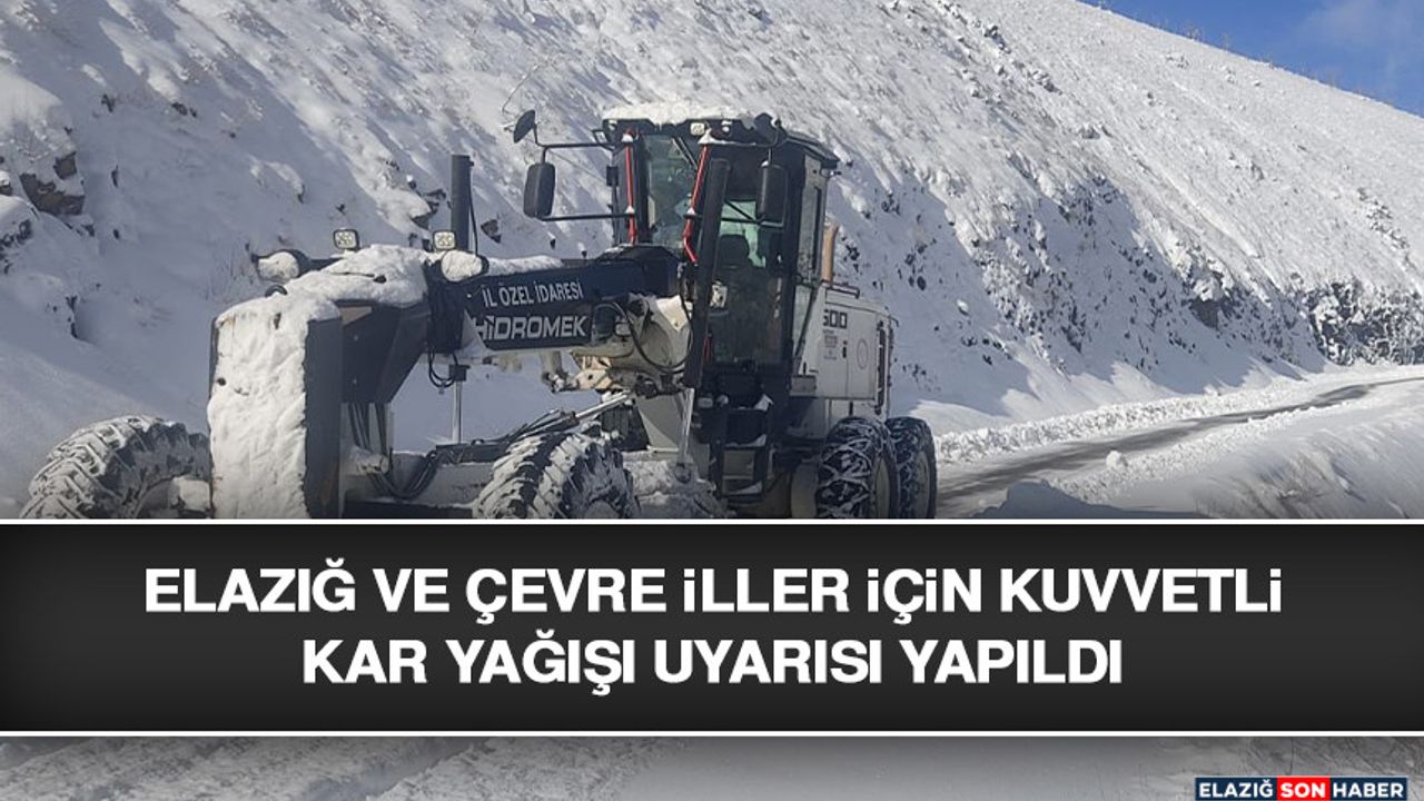 Meteoroloji Genel Müdürlüğü ve İçişleri Bakanlığı, aralarında Elazığ’ın da bulunduğu çok sayıda il için kuvvetli ve yoğun kar yağışı uyarısında bulundu.