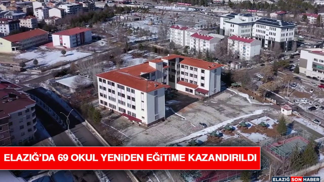 Yıkılan okulların yerine planlanan 91 yeni okuldan 69’u tamamlanarak eğitime kazandırıldı. 16 okulun inşaat çalışmaları sürerken, Elazığ Öğretmenevi ile 6 okulun ihale öncesi hazırlıkları tamamlandı. Ayrıca kent genelinde 38 okulda güçlendirme çalışması yapılırken, birçok okulda bakım, onarım ve tadilat gerçekleştirildi.