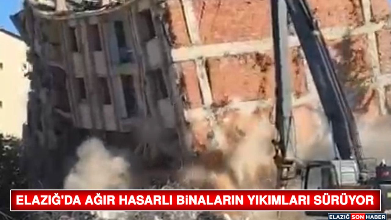 Kahramanmaraş'ta 6 Şubat 2023'te meydana gelen yıkıcı depremlerden etkilenen iller arasından bulunan Elazığ'da ağır hasarlı binaların yıkımı sürüyor.