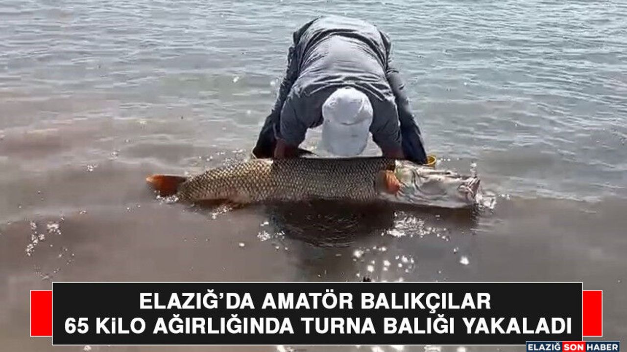 Elazığ’da amatör balıkçılar tarafından sezonun son dev turnası yakalandı. Murat Nehri’nde balık sezonunun bitmesine yakın arkadaşlarıyla birlikte ava giden Mehmet Sait Karadağ, oltayla 65 kilo ağırlığında dev turna balığı yakaladı.