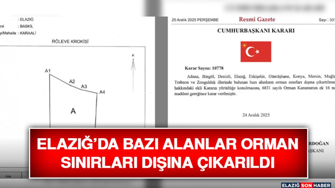 Resmî Gazete’ de yayımlanan Cumhurbaşkanı Kararı ile Baskil ilçesine bağlı Karaali Köyü’nde bulunan bazı alanlar orman sınırları dışına çıkarıldı.