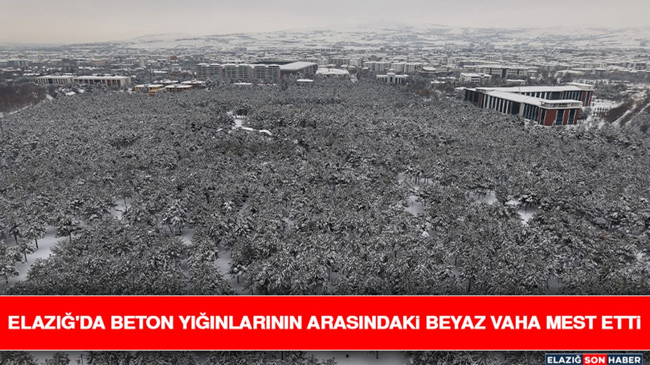 Elazığ'da kar yağışının ardından oluşan görüntüler, bu kez yüksek rakımlı dağlardan değil, şehrin merkezinden geldi. Beton binaların ve ana arterlerin çevrelediği Fırat Üniversitesi kampüsü içindeki ormanlık alan, kar yağışıyla birlikte şehir merkezinde dev bir kış bahçesine dönüştü. Genellikle kentin yüksek kesimlerinde görmeye alışık olunan yoğun kar manzaraları, bu kez Elazığ'ın en işlek noktalarından biri olan Zübeyde Hanım Caddesi'nin hemen yanı başındaki ormanlık alanda kaydedildi. Kültür Park'ın modern dokusuyla birleşen ormanlık alan, havadan görüntülendi. Dağ yollarını aratmayan kar yoğunluğunun şehrin göbeğinde sergilediği bu anlar, nadir kareler oluşturdu.