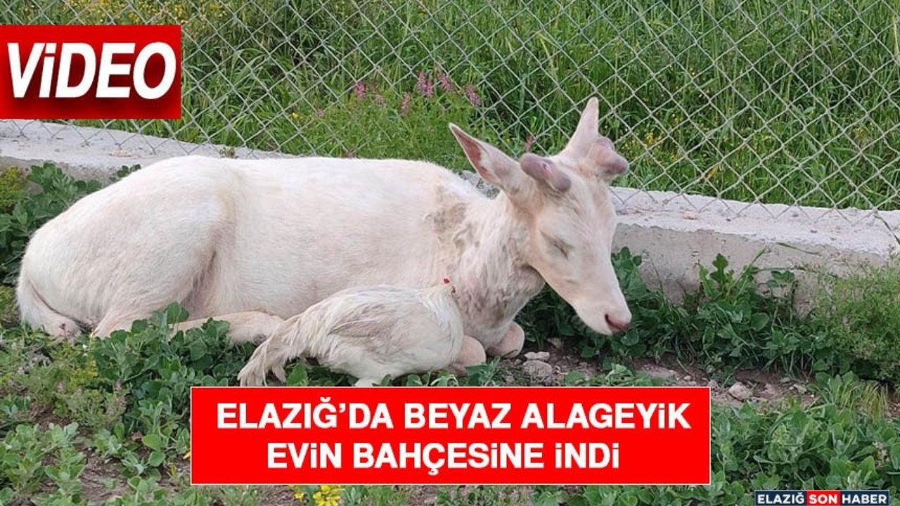 Elazığ'ın Ağın ilçesinde doğal yaşam alanından bir evin bahçesine inen bembeyaz alageyik, ilginç görüntülere sahne oldu. Türkiye'de genelde pas kırmızısı ile gri tonlarda görülen alageyik, beyaz rengiyle dikkat çekti. Ev sahibinin horozu ise, geyiğin yanına yaklaşarak üzerine konduğu, iki farklı türün bir arada görüntülendiği anlar kameraya yansıdı.