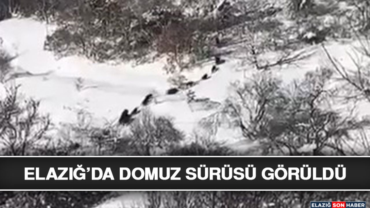 Elazığ’ın Baskil ilçesine bağlı Hacıhüseyinler köyünde yiyecek arayan domuz sürüsü bir vatandaşın cep telefonu kamerasına yansıdı.
