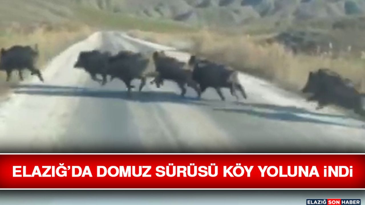 Elazığ’ın Baskil ilçesine bağlı Konacık köyünde domuz sürüsü görüntülendi.