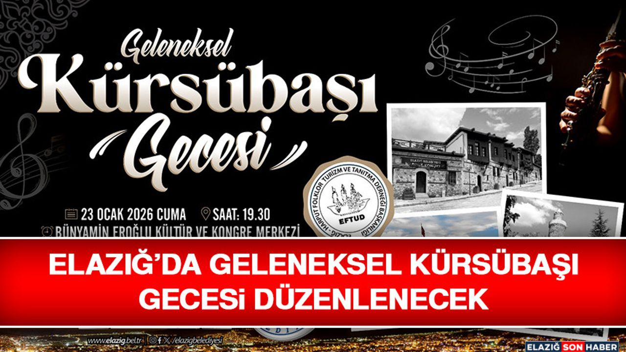 Elazığ Belediyesi Basın-Yayın ve Halkla İlişkiler Müdürlüğü'nden yapılan açıklamada, “Her ayın 23’ünde düzenlediğimiz "Geleneksel Kürsübaşı Gecesi" 23 Ocak Cuma günü, saat 19.30’da Bünyamin Eroğlu Kültür ve Kongre Merkezi'nde bir kez daha hemşehrilerimizle buluşacak. Harput musikisinin birbirinden güzel ve özel eserlerinin seslendirileceği, ikramların da yer alacağı geceye tüm halkımız davetlidir.” denildi.