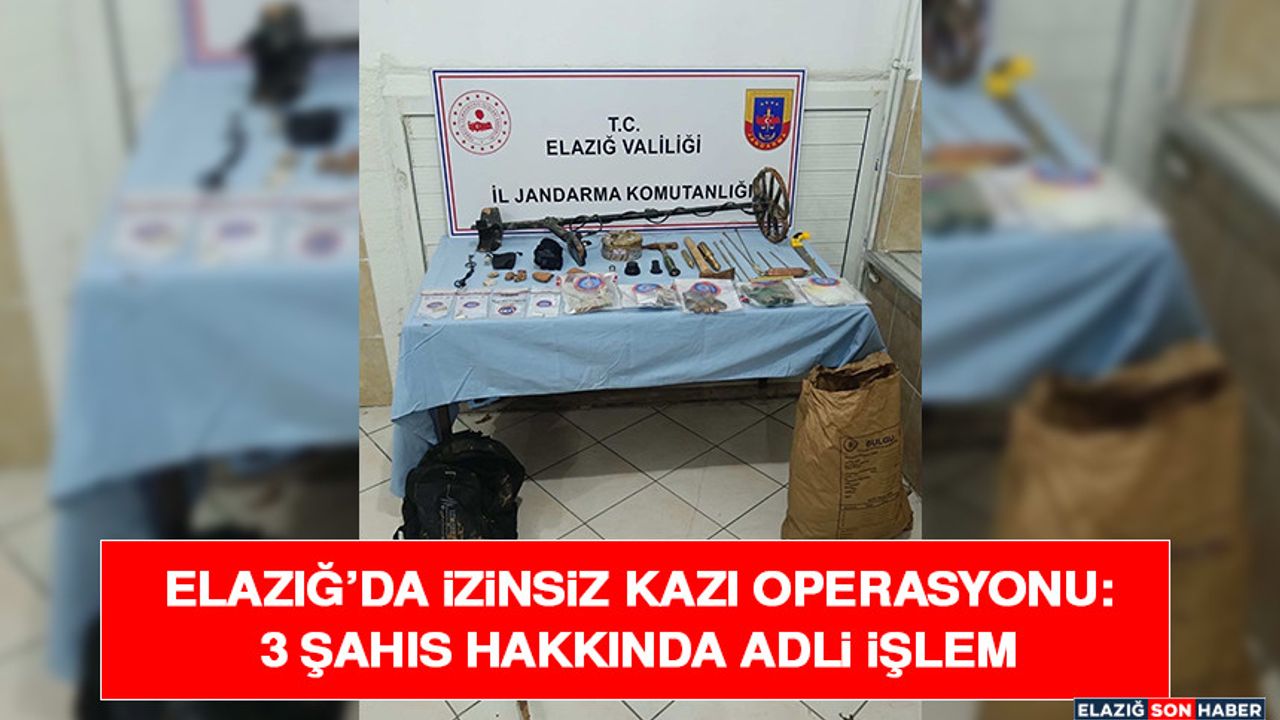 Vali Hatipoğlu’nun açıklamasına göre, İl Jandarma Komutanlığı ekiplerince yürütülen çalışmalar sonucunda A.Ö., M.A. ve M.K. isimli 3 şahsın izinsiz kazı yaptıkları tespit edildi. Olay yerinde yapılan aramalarda; testere, metal el aletleri, el dedektörü, kazma, kürek, testi olduğu değerlendirilen küp parçaları, bakır tel, tüfek fişeği ve çeşitli malzemeler ele geçirildi.