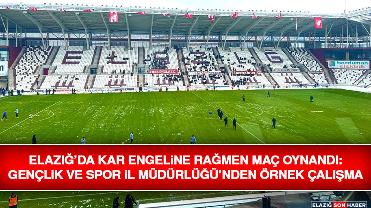 Elazığ’da etkili olan yoğun kar yağışına rağmen Seza Çimento Elazığspor ile MKE Ankaragücü arasında oynanan karşılaşma, Elazığ Gençlik ve Spor İl Müdürlüğü’nün özverili çalışmaları sayesinde güvenli ve sağlıklı koşullarda gerçekleştirildi.