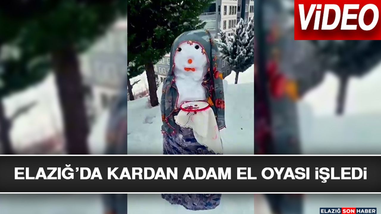 Züleyha Erhan, yaptığı kardan adamın eline Elazığ’a özgü el oyası işleme tutuştururken, başına da Elazığ yazması örttü.