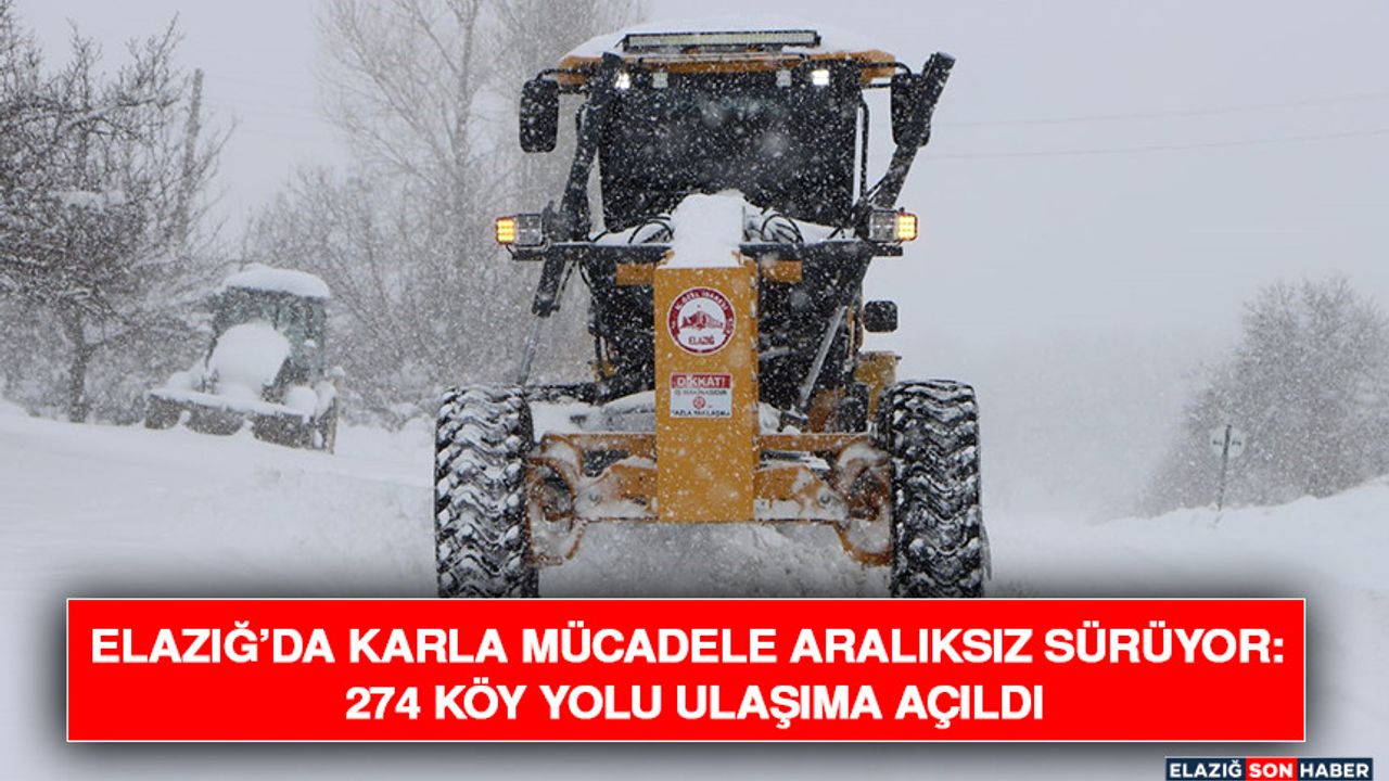 İl genelinde toplam 546 köy bulunurken, çalışmalarda 90 araç ve 120 personel görev aldı. En fazla kapalı yolun bulunduğu ilçeler arasında Merkez, Karakoçan, Sivrice ve Baskil öne çıktı.e)Yetkililer, ekiplerin sahada çalışmalarına devam ettiğini belirterek vatandaşların zorunlu olmadıkça trafiğe çıkmamalarını ve resmi duyuruları takip etmelerini istedi.