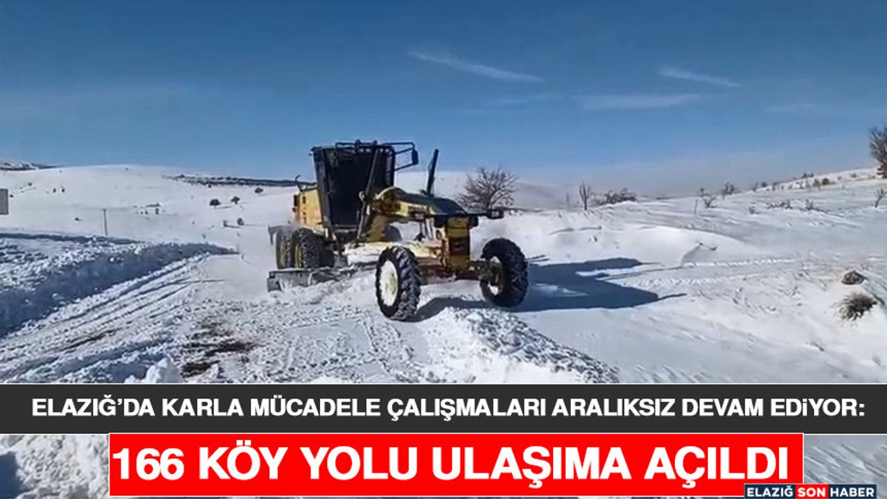 İl Özel İdaresi Yol ve Ulaşım Hizmetleri Müdürlüğü ekipleri, 90 araç ve 120 personelle sahada çalışmalarını yürütüyor. En fazla kapalı köy yolunun 26 köy ile Baskil ilçesinde bulunduğu, Karakoçan’da 11, Kovancılar’da 6, Palu’da 4 ve Arıcak’ta 2 köy yolunun kapalı olduğu kaydedildi. Merkez, Maden, Ağın, Alacakaya, Keban ve Sivrice ilçelerinde ise kapalı köy yolu bulunmuyor.