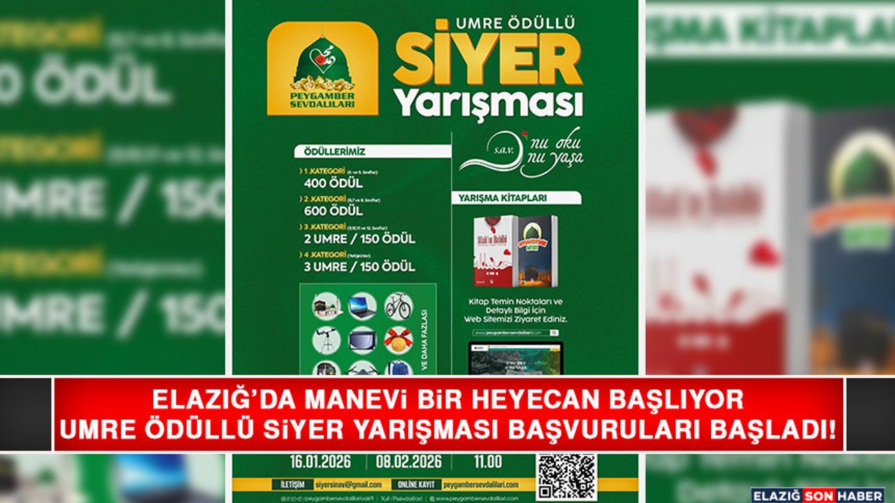 Elazığ, bu kış gönülleri ısıtacak anlamlı bir etkinliğe ev sahipliği yapmaya hazırlanıyor. Peygamber Sevdalıları Vakfı Elazığ İl Koordinatörlüğü tarafından düzenlenen Umre ödüllü Siyer Yarışması, her yaştan vatandaşın Peygamber Efendimiz Hz. Muhammed (s.a.v)’in hayatını daha yakından tanımasını hedefliyor.