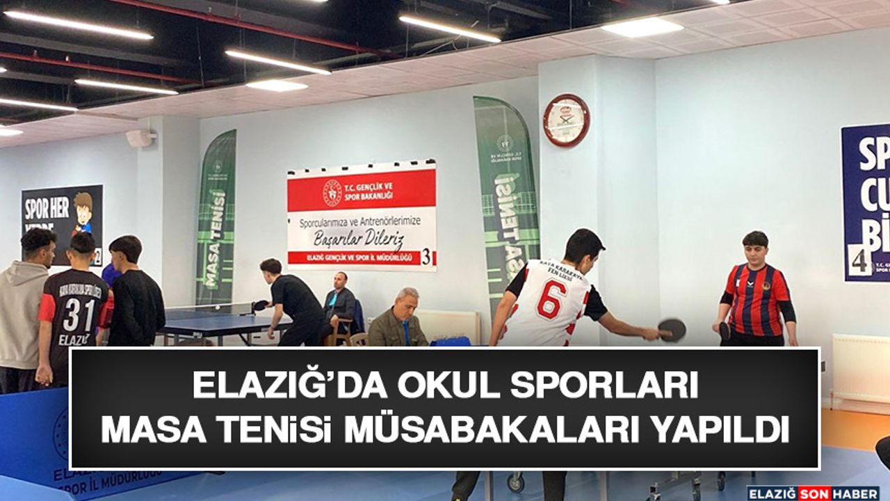 Gençlik ve Spor Bakanlığı koordinesinde düzenlenen Okul Sporları Gençler Masa Tenisi İl Birinciliği Müsabakaları, 22-26 Aralık tarihleri arasında Elazığ’da başarıyla gerçekleştirildi. Atatürk Stadyumu Masa Tenisi Salonu’nda düzenlenen organizasyona toplam 16 okuldan 76 sporcu katılım sağladı. 5 gün süren müsabakalarda genç sporcular, centilmence mücadeleleri ve sergiledikleri yüksek performansla izleyenlerden tam not aldı. Turnuva boyunca hem kızlar hem de erkekler kategorilerinde kıyasıya rekabet yaşandı.