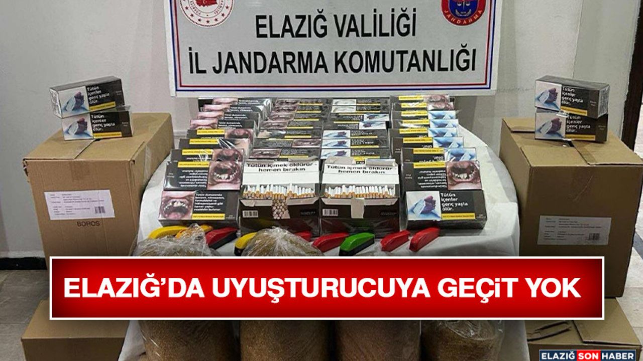 Öte yandan Elazığ İl Jandarma Komutanlığına bağlı Merkez Jandarma Karakol Komutanlığı, İstihbarat Şube Müdürlüğü, Narkotik Suçlarla Mücadele, JASAT ve KOM Şube Müdürlüğü ekiplerince yürütülen istihbari çalışmalar neticesinde kaçak sigara satışı yaptığı tespit edilen bir şüpheli şahsın evinde ve eklentilerinde adli arama gerçekleştirildi. Yapılan aramalarda; 63 bin dal boş makaron, 4 bin dal için tütün, doldurulmuş makaron, 17,5 kilogram kıyılmış tütün ile 9 adet tütün dolum makinesi ele geçirildi.