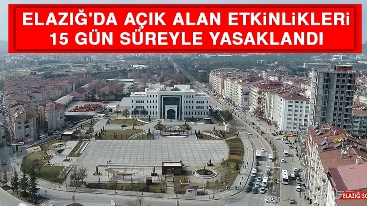 Elazığ Valiliği, kent genelinde yapılması planlanan her türlü açık hava toplantısı, yürüyüş, miting, basın açıklaması, çadır kurma, stant açma, oturma eylemi, imza kampanyası, anma töreni, yüksek sesle yayın yapan araçlarla şehir içerisinde tur atılması, toplu karşılama ve uğurlama gibi eylem ve etkinliklerin 15 gün süreyle yasaklandığını duyurdu.