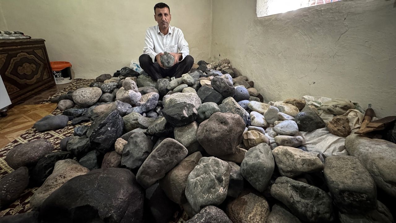 ELAZIĞ (AA) - İSMAİL ŞEN - Elazığ'ın Palu ilçesinde çiftçilik yapan Hüseyin Özdemir, meteor olduğunu düşündüğü yüzlerce taşı evinin bir odasında biriktirdi.