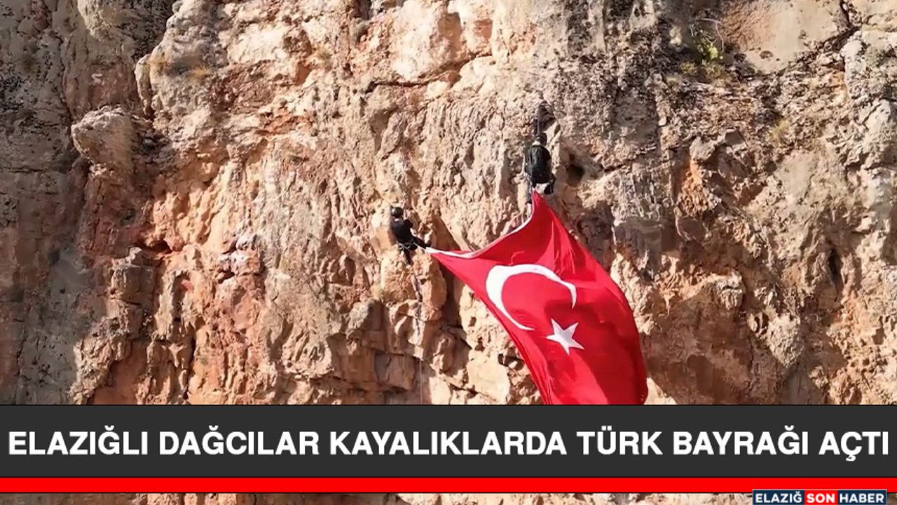 Elazığ’da 29 Ekim Cumhuriyet Bayramı kutlamaları sürüyor. Bu çerçevede Elazığ Doğa Sporları Spor Kulübü ve Ağın Kaymakamlığı ortak bir etkinlik düzenledi. Bu çerçevede 7 profesyonel dağcı Balkayası kayalıklarından halatlı iniş yaparak Türk Bayrağını dalgalandırdı. O anlar dron ile kaydedildi.
