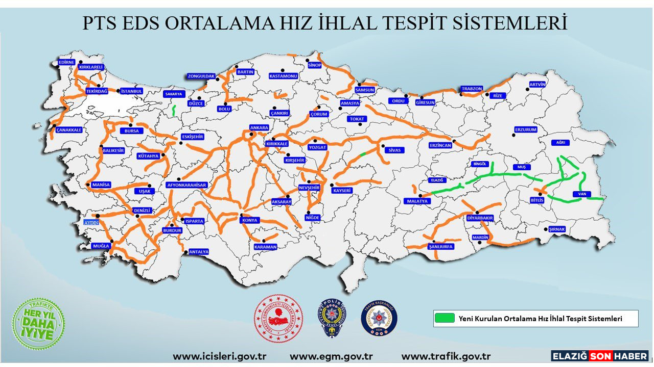 Emniyet Genel Müdürlüğü (EGM), trafik güvenliğini artırmak amacıyla 10 Temmuz 2025 itibarıyla Elazığ ve 8 ilde daha karayollarında ortalama hız denetimlerine başlandığını duyurdu. Yapılan açıklamaya göre, Kent Güvenlik Yönetim Sistemi (KGYS) kameralarıyla sürücülerin belirli mesafelerdeki hızları hesaplanarak trafik ihlalleri tespit edilecek.