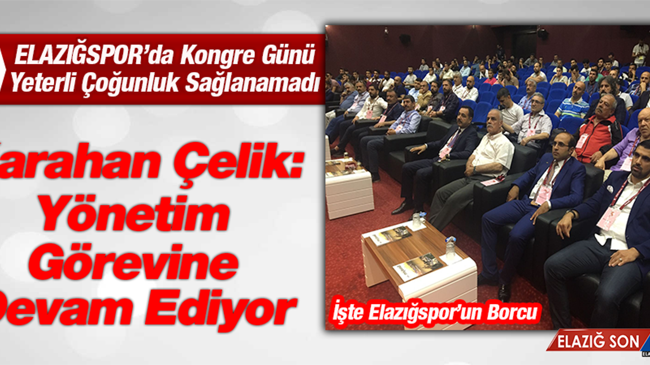 Karahan Çelik konuşmasında, “Elazığ ve spor kamuoyununda takip ettiği ve malumu olduğu son 1 ayda Elazığ sporla ilgili yaşana gelişmeler ve bu gelişmeler akabinde Sedat Karataş’ın istifa etmesiyle genel kurulu sürecine girildi bu istifanın amacı çok netti. Bu istifayı blöf olarak yorumlayan oldu bu istifanın bir tek amacı vardı. Elazığspor’u yaşanan bu tartışmaların içinden çıkarıp yeni daha güçlü Elazığspor’u en az bu şekilde yönetebilecek bir yönetim sağlamak. Bu işi üstelene yöneticilerimiz önünü açmaktı. Elazığ da uçan kuşun haberi olmasına rağmen maalesef bugün genel kurulumuz toplanamadı. Hiçbir yönetim aday olmaya talip olmadı. Geçen yıl ve bu yıla geldiğimiz sürede Elazığ spoır aday olunamayacak bir halde mi asla böle değil. Bugün genel kurul toplanmış olsaydı mali tabloyu da konuşacaktık.