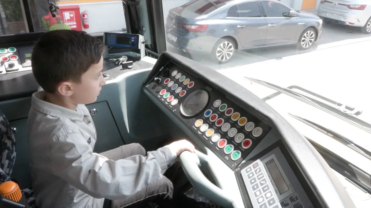 23 Nisan Ulusal Egemenlik ve Çocuk Bayramı'nda tüm makamlar sembolik olarak çocuklara bırakılırken, en büyük hayali tren sürmek olan Bursalı 10 yaşındaki Mehmet Eren Altıntaş, vatman koltuğuna oturarak metro sürdü.BURSA (İGFA) - Bursa'da yaşayan 10 yaşındaki Mehmet Eren Altıntaş’ın en büyük hayali, bir gün vatman koltuğuna oturup tren sürmekti. Sık sık metroyla yolculuk yapıp vatmanın oturduğu ilk kabine giderek gözünü yoldan ayırmayan Mehmet Eren, hayalini gerçekleştirmek için Büyükşehir Belediyesi’ne dilekçe ile başvurdu. Annesi ve iki ablasıyla birlikte davet edilen Mehmet Eren için BURULAŞ test pistinde bir vagon hazırlatıldı. Büyük bir heyecanla vatman koltuğuna oturan Mehmet Eren, trenin nasıl hareket ettirileceğini öğrendikten sonra test pistinde metroyu sürdü. Çok mutlu olduğunu söyleyen Mehmet Eren, “Hayalime kavuştum. Herkese çok teşekkür ediyorum” dedi.