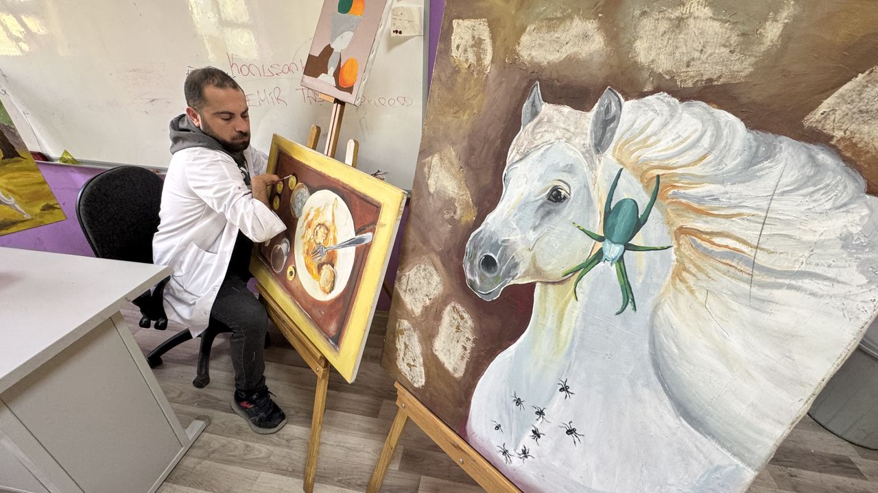 'Engelimin olması beni hiçbir zaman durdurmadı, tam tersine motive etti. Neler yapabileceğimi keşfettim. Sayısını bilmediğim çizim ve tablolarım var. Lise, üniversite ve sonrasında yaptığım karakalem ve yağlı boya çalışmalarım devam ediyor. Öğrencilerin çizimlerini gördükçe daha çok üretmeye yöneliyorum. Onların ilerlemesi benim en büyük motive kaynağım.'