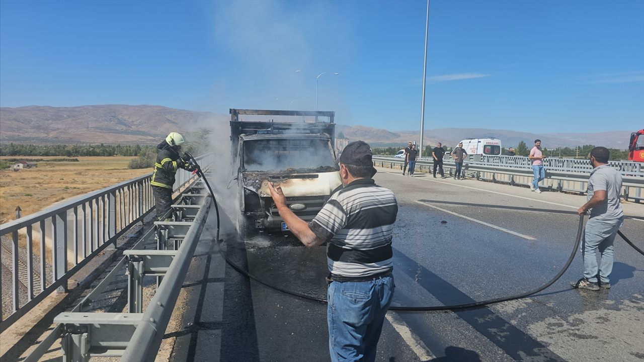 ERZİNCAN (AA) - Erzincan'da seyir halindeyken alev alan kamyonet, itfaiye ekiplerin müdahalesiyle söndürüldü.